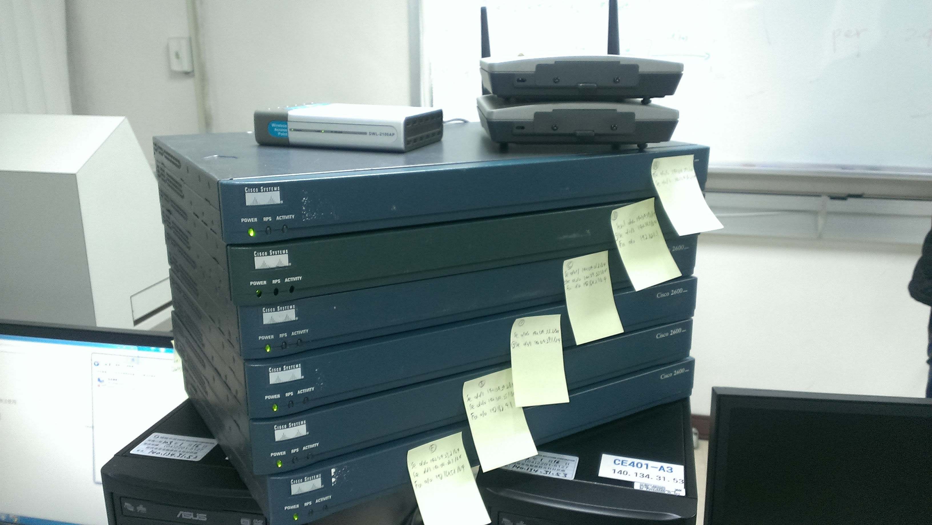 | 由左至右(數條DTE/DCE,Console線一條,數條電源線) |